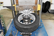 Другое точно такое же колесо, но уже без шины, тоже подвергается циклическим нагрузкам, но на стенде попроще. Обод жестко крепится к металлическому столу, а к ступичной части прикладывается циклический момент с вращением. Эти испытания — уже «официальные», на соответствие ГОСТу Р 50511-93, который повторяет правило ЕЭК ООН № 124. Без разрушений и трещин колесо должно выдержать 200 тысяч циклов нагрузки заданным моментом. Это — необходимое, но еще не достаточное условие для получения сертификата.