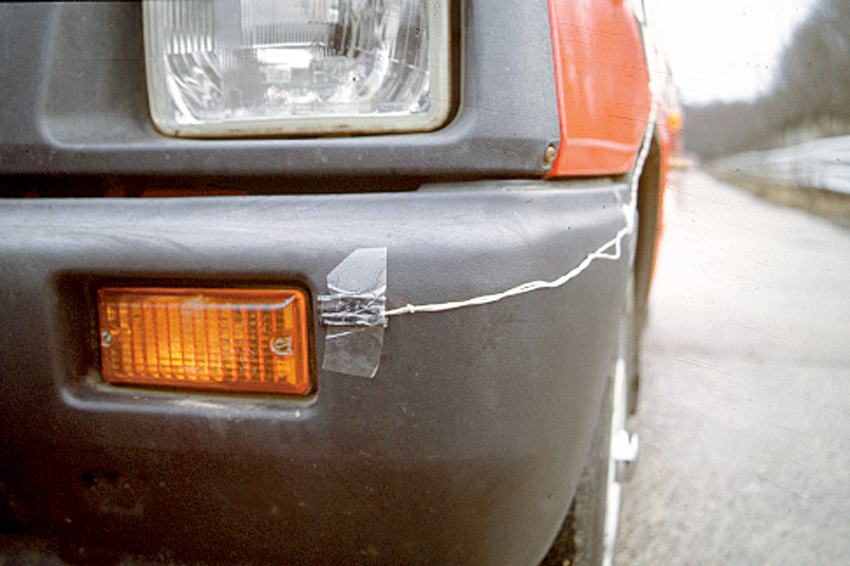 К левой части переднего бампера приклеен одноразовый датчик начала столкновения
