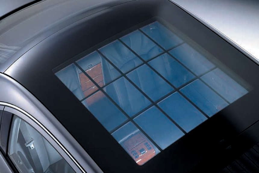 Пережив эту неловкость, начинаю потихоньку осваиваться. Оказывается, рассеченный на прямоугольные окошечки гигантский «люк» в крыше может не только изменять свою прозрачность, но и сам излучать мягкий свет, причем с различной интенсивностью. И вообще, здесь подсвечивается все, что можно, а больше всего удивили излучающие слабый сиреневый свет полоски над верхними кромками задних дверей. Это чтобы в темноте видеть границы проемов; упаси бог, если пассажир приложится головой.