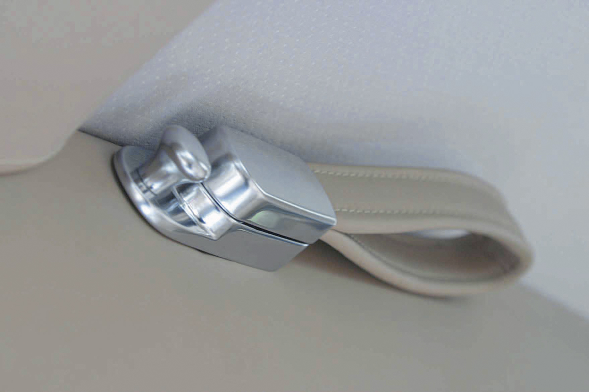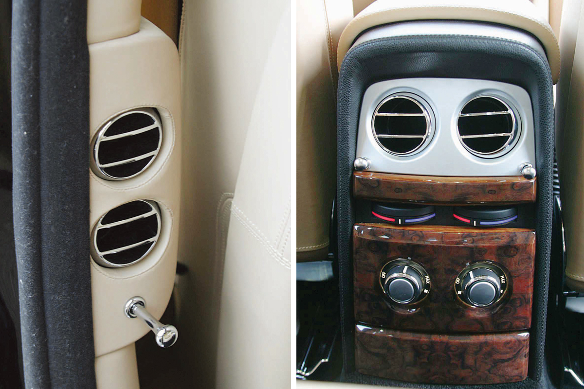 Как и у многих предыдущих Роллс-Ройсов, изнутри массивные задние стойки декорированы зеркалами с интегрированными плафонами «интимной» подсветки