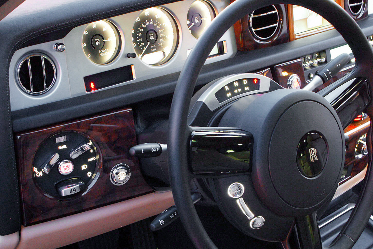 В ответ на легкое нажатие напольной педали газа Phantom трогается бесшумно и невероятно плавно. Двигатель V12 от BMW 760 с рабочим объемом, увеличенным до классической роллс-ройсовской цифры в 6,75 л, уже при 1000 об/мин развивает свыше пятисот ньютон-метров. Шестиступенчатый «автомат» настроен на ранние переключения — при неспешной езде обороты двигателя не поднимаются выше 1500—2000 об/мин. В результате мотора практически не слышно, почти не ощущаются и толчки при смене передач.