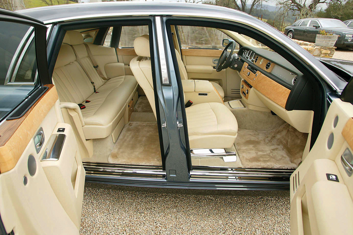 Еще одно, что отличает Phantom от Майбаха и от всех других современных автомобилей, — открывающиеся против хода задние двери. Как их называют англичане, suicide doors, «двери для самоубийц». Стоит чуть приоткрыть на ходу такую дверь, и поток воздуха моментально распахнет ее до упора, превратив в мощнейший аэродинамический тормоз. Поэтому нынешние правила безопасности запрещают использование полноценных «суицидальных дверей» — разрешены только дополнительные «половинки» (как на многих пикапах с «полуторной» кабиной или на купе Mazda RX-8), на которые внахлест заходят передние двери.