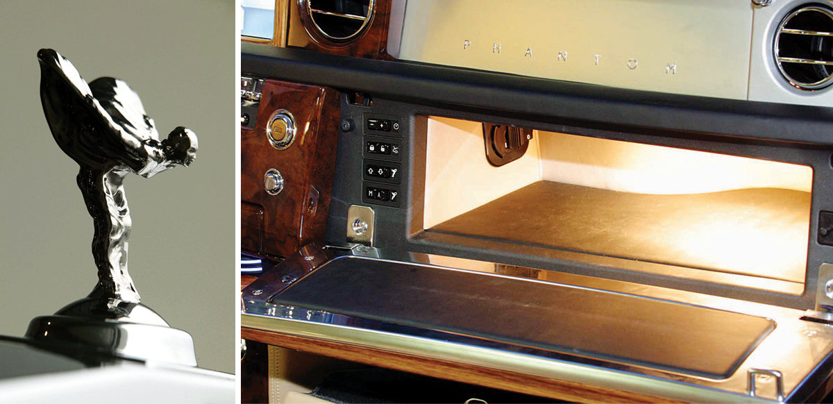Под «мебельной» крышкой перчаточного ящика — клавиши, с помощью которых Дух Экстаза убирается вглубь решетки