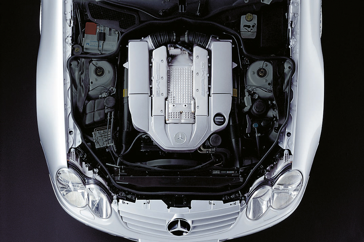 В основе мотора — блок от «пятисотой» V-образной «восьмерки». Диаметр цилиндров оставили тем же — 97 мм, а рабочий объем в 5,5 л достигнут за счет увеличения хода поршней: вместо 84 мм — 92. То есть здесь другой коленвал. Сами поршни — из более прочного и термостойкого сплава. Распредвал — с расширенными фазами впуска, а клапаны — на двух пружинах (чтобы уменьшить инерционность их работы, ведь максимальные обороты двигателя увеличились с 5600 до 6100).