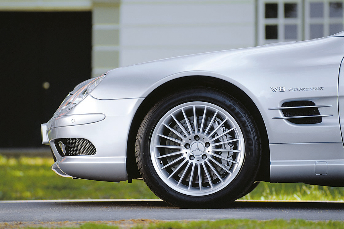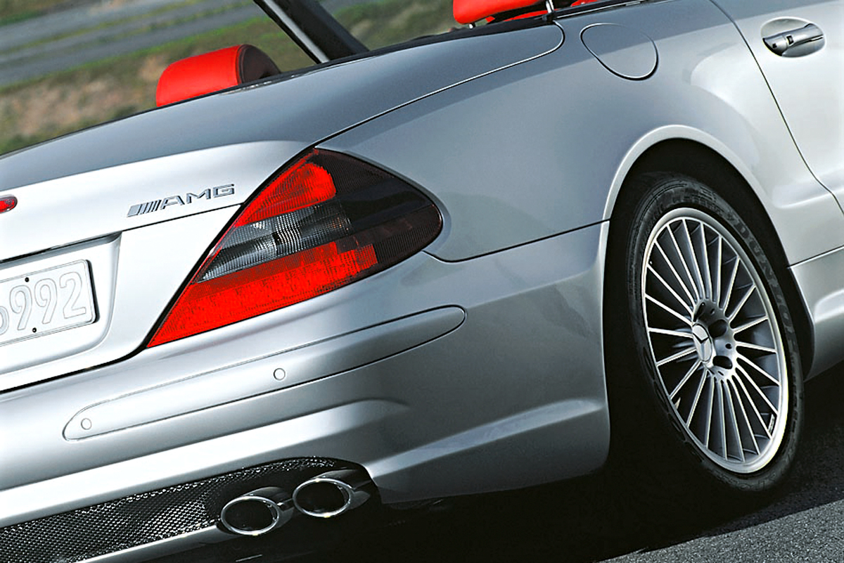 В отличие от SL500, на версии SL55 AMG перфорированы не только передние, но и задние диски. Площадь контакта дисков с фрикционными накладками тормозных колодок увеличена вдвое