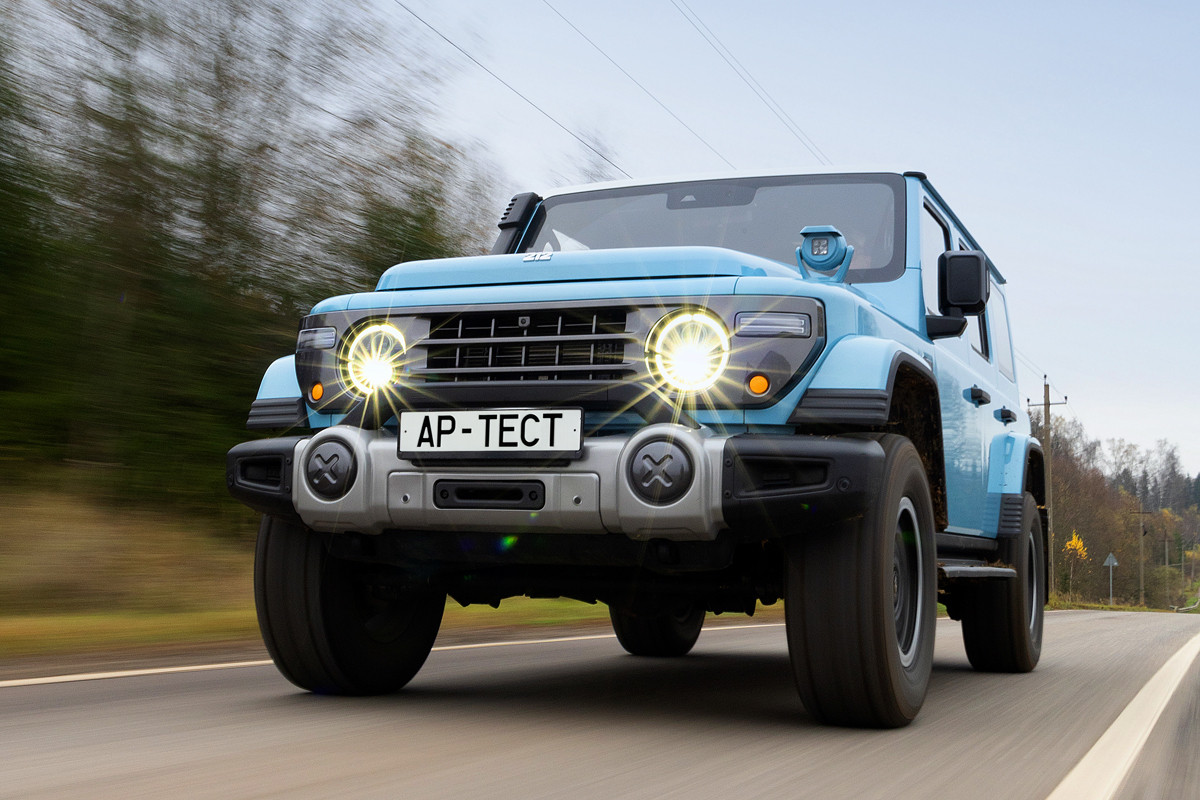 Помните детскую песенку про щенка, похожего на всех овчарок сразу? Так вот, первая гражданская версия автомобиля 212 Т01, которую компания BAW выпускает с 2024 года, — это тот самый случай. И на бульдога, и на дога, и на ГАЗ, и на УАЗ, и на «семидесятый» Land Cruiser, и на Defender всех поколений — и даже на экзотический Ineos Grenadier. А если заглянуть в подбрюшье, то в архитектуре мощной рамы померещится Jeep Wrangler. И черт побери, до чего же ловко все собрано в один образ — ведь в пропорциях кузова и шасси нет ни единого визуального провала. Ностальгический дизайн давит слезу: будь у нас в стране конкурс Автовинтаж, стоять этому автомобилю на пьедестале.