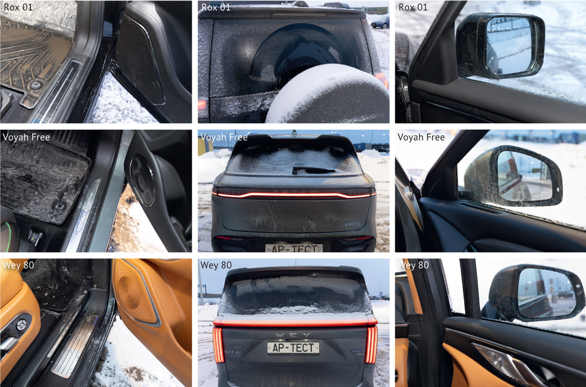 Фары чуть сильнее забрасывает грязью Voyah. А Rox удивил запотеваниями — как передней, так и задней светотехники.