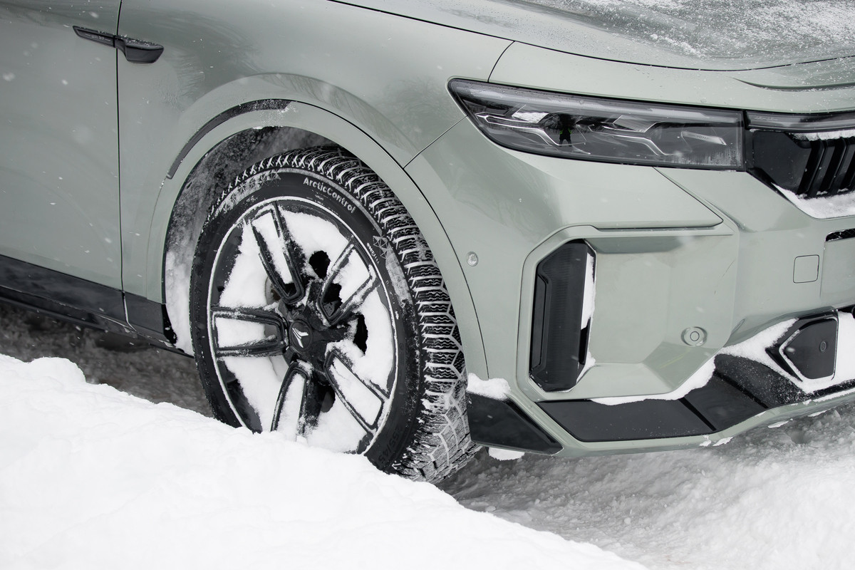В кои-то веки получилось обуть все три тестовых автомобиля в одинаковые шины бренда Gislaved холдинга Кордиант. Это фрикционные шины ArcticControl, известные в прошлом как Continental VikingContact 7. Рисунок тот же, производятся там же — на калужском заводе по технологиям немецкого концерна. Благо сейчас шины ArcticControl выпускаются в широкой линейке типоразмеров, и мы смогли подобрать штатные покрышки для всех участников теста: от 18-дюймовых на Wey 80 до 21-дюймовых на Rox 01.