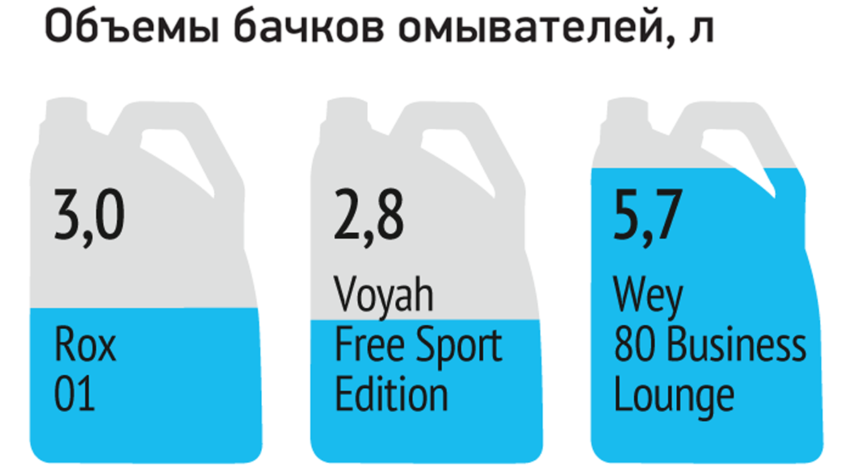 По запасу незамерзайки Wey, согласно измерениям Авторевю, превосходит соперников почти вдвое