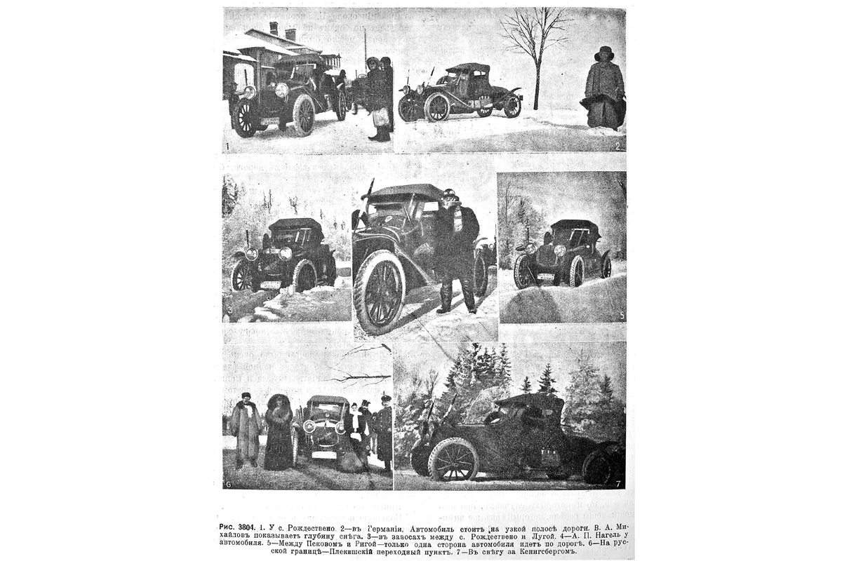 Вот, к примеру, фрагмент из репортажа о пробеге через Прибалтику: «Десятки таратаек и повозок тащились к городу, и большая их часть при появлении автомобиля отправлялась в канавы при дороге... Всего удивительнее и достойнее внимания то обстоятельство, что ехавшие эстонцы и лифляндцы нисколько не были в претензии на нас за свои несчастия. Лица их озарялись радостно-глупой улыбкой при виде автомобиля, и, насколько можно было заметить, эта улыбка не покидала их даже в канаве».