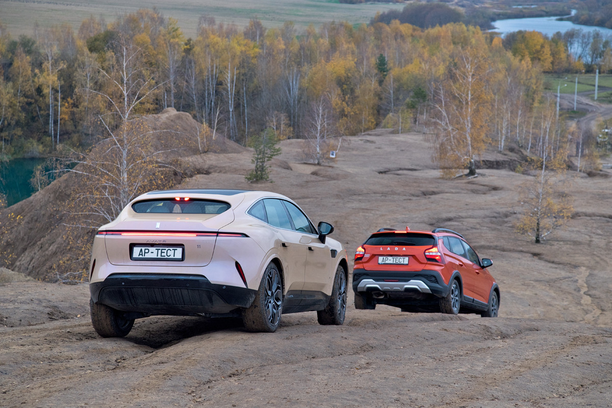 Тщетно пытался я образумить азартных коллег: мол, по тем промоинам, где я только что еле-еле пробрался на приподнятом кроссовере Exlantix ET, седан точно не пройдет. Но ребята разведали более ровный трек — и вот на вершине Кондуков стоят все десять машин, включая совсем не предназначенный для офроуда седан.