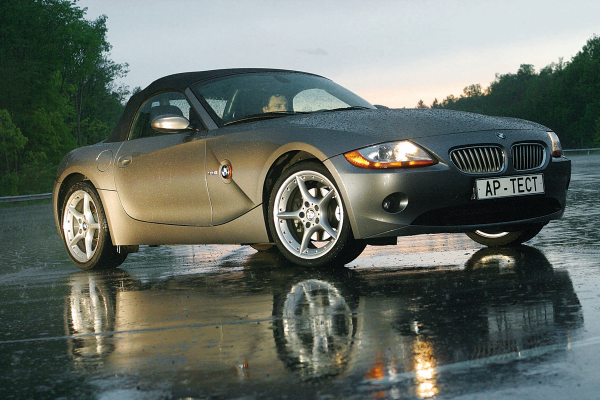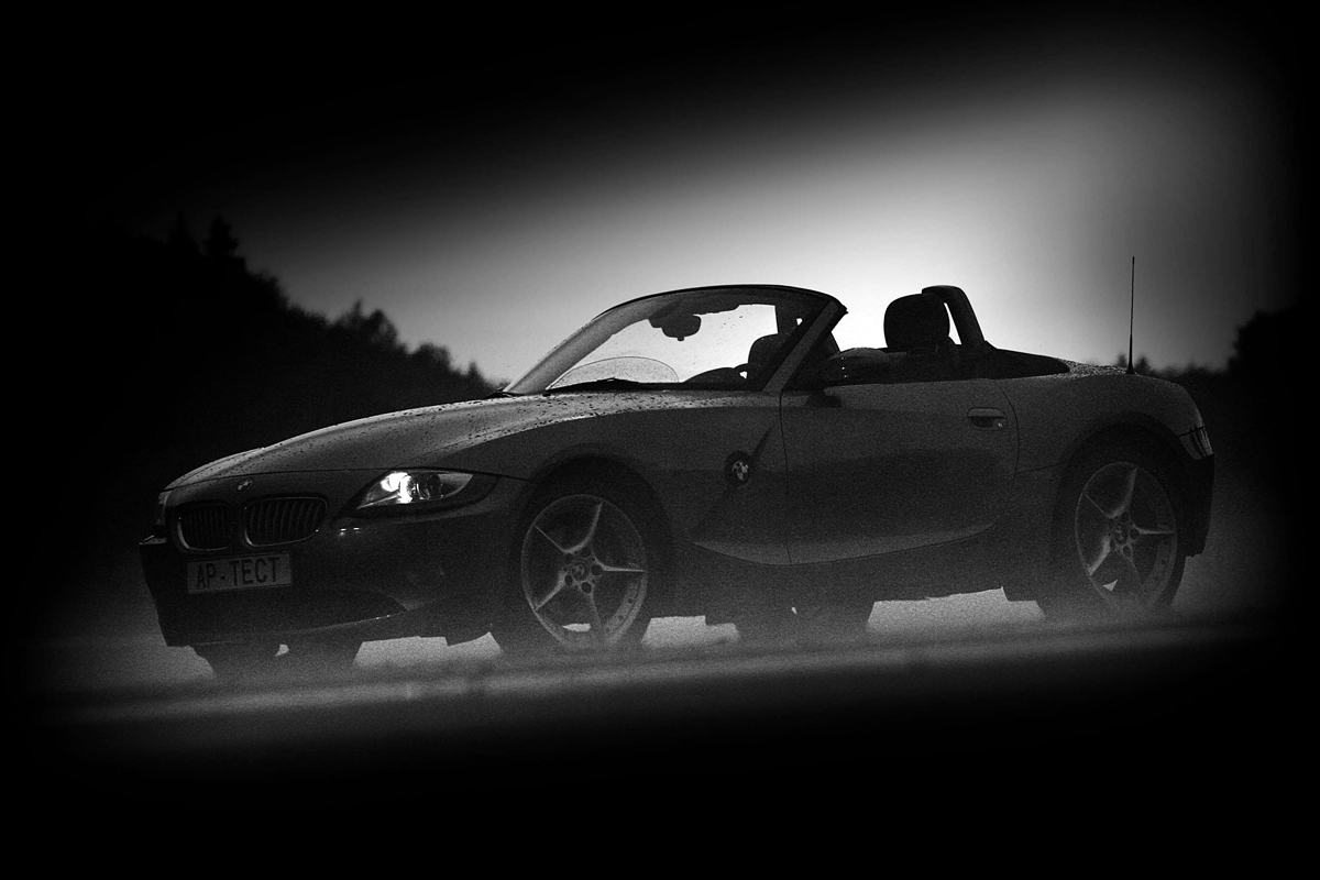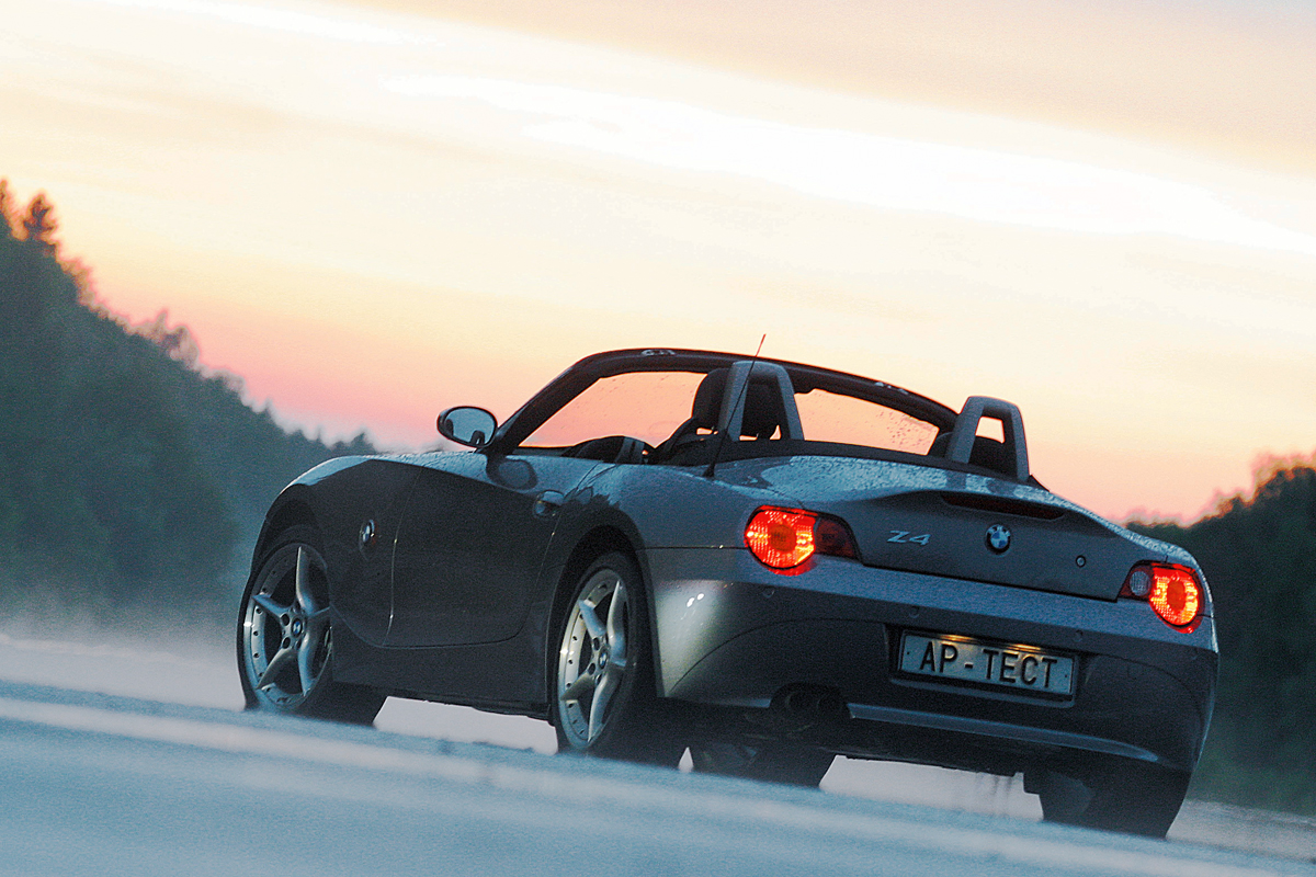 Однако при всех своих недостатках повороты Z4 пишет идеально. Несмотря на «острый» руль, переход на дугу начинается плавно, и лишь затем родстер резко бросается в поворот, прочерчивая, словно циркулем, выбранную траекторию. Быстрее, еще быстрее. Вот уже визжат шины, сейчас сорвутся... Передние или задние? Никогда не знаешь наверняка. В большинстве ситуаций преобладает снос — родстер «выплывает» наружу поворота, скользя передними покрышками. Но иногда BMW может «провалиться» в резкий занос. И восстановление сцепления с асфальтом произойдет тоже неожиданно — «зетка» внезапно рванется туда, куда направлены вывернутые для коррекции заноса передние колеса.