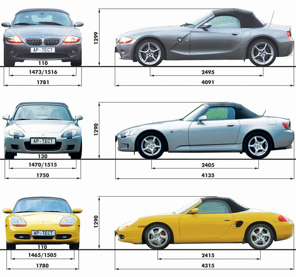 | BMW Z4 | Honda S2000 | Porsche Boxster S | |