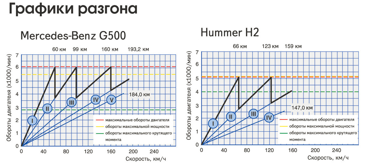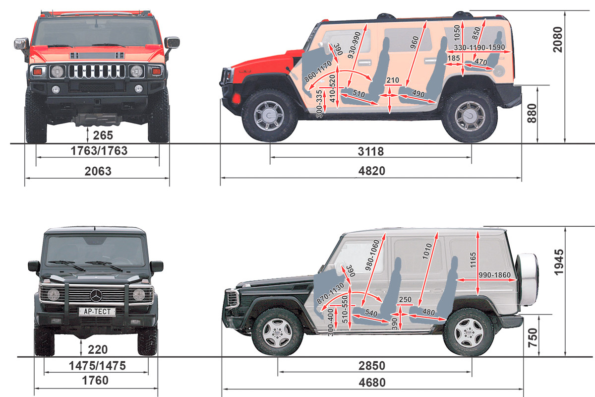 | Hummer Н2, Mercedes G500 (данные производителей) | |||