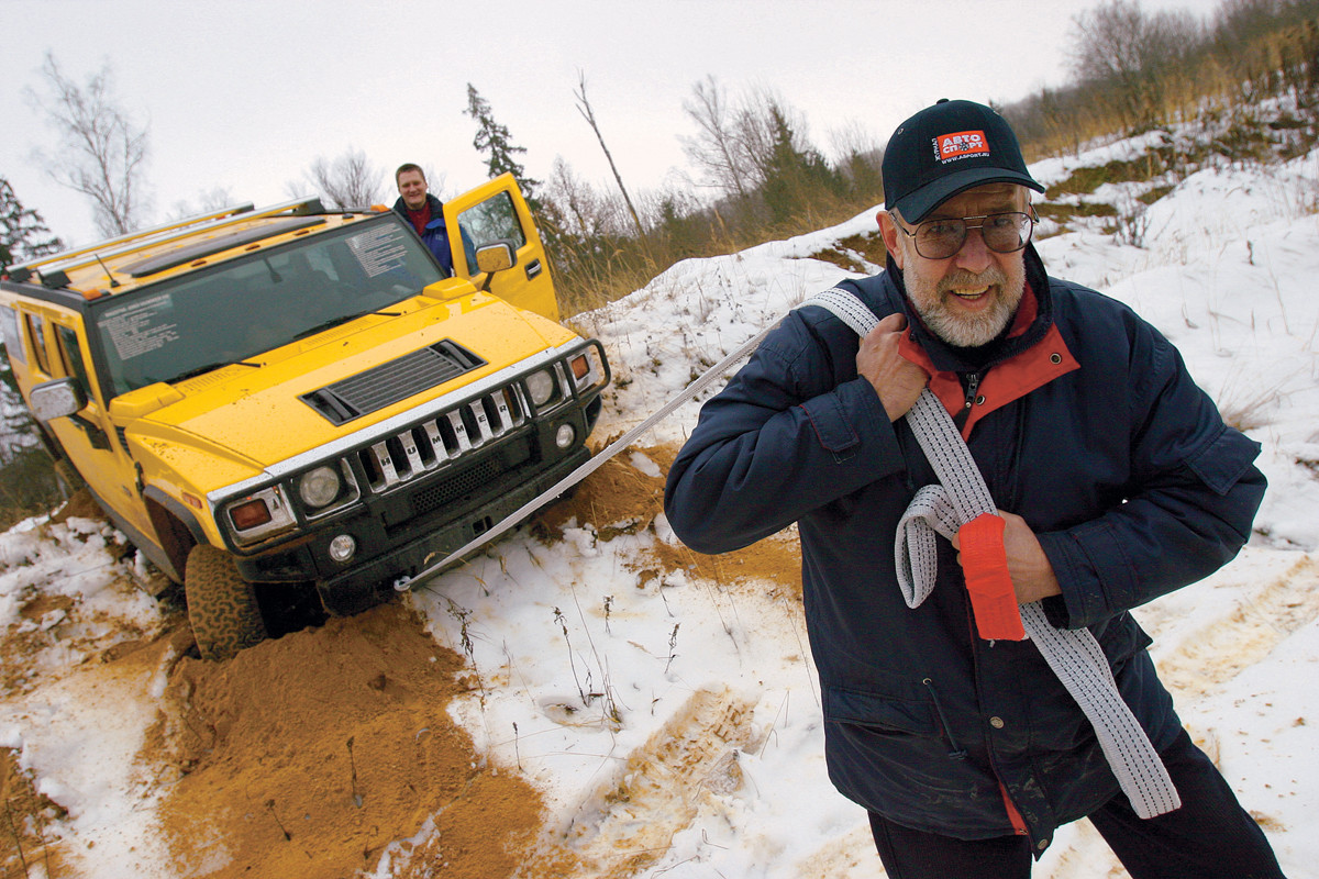 Сумасбродная автоматическая трансмиссия проявила себя на бездорожье двояко. С одной стороны, на снегу и на слабонесущих грунтах задумчивый гидротрансформатор дает возможность плавно тронуться с места, исключая пробуксовку колес. Это великое благо. С другой — водитель лишается обратной связи и не чувствует момент, когда движение вперед становится рискованным: возрастающее сопротивление качению колес просто-напросто «тонет» в общих трансмиссионных потерях. В этом, кстати говоря, кроется коварство Хаммера — штатных средств самоэвакуации у него нет, а найти тягач близкой весовой категории будет непросто.