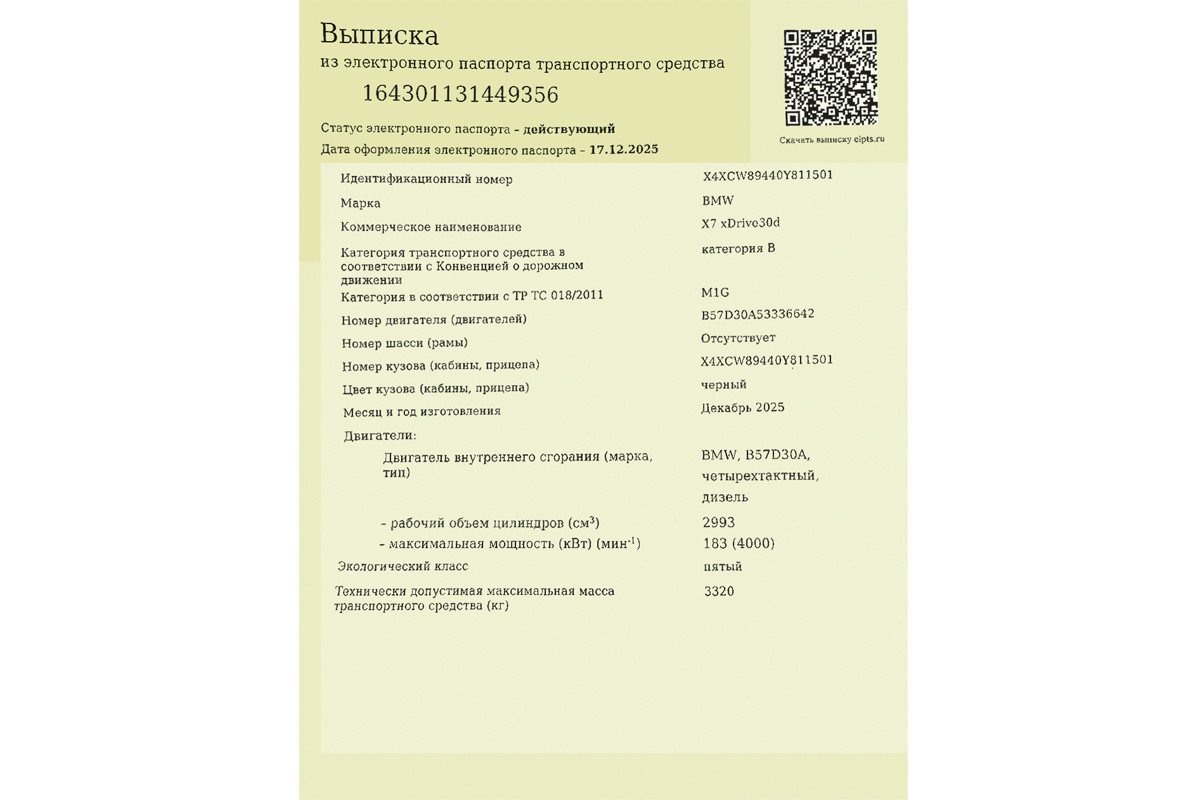 Электронный ПТС содержит информацию о марке и модели: BMW X7 xDrive30d