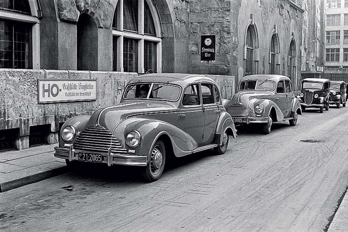 В 1945 году завод BMW в Айзенахе оказался на территории Восточной Германии под советской администрацией и вскоре возобновил производство автомобилей на оригинальном оборудовании. Там выпускали модели 321, 326, 327 и 340, а также мотоциклы — и это были единственные оригинальные BMW на тот момент, ведь заводы Баварии стояли в руинах. В 1951 году штаб-квартира BMW отсудила права на бренд и эмблему, поэтому Айзенах вынужден был поменять синие сектора фирменного пропеллера на красные, чтобы получился «социалистический BMW» под названием EMW, то есть Eisenacher Motorenwerk. В общей сложности завод выпускал баварские машины почти десять лет, после чего, в 1955-м, переключился на Wartburg 311. Всего было сделано около 30 тысяч восточных BMW.