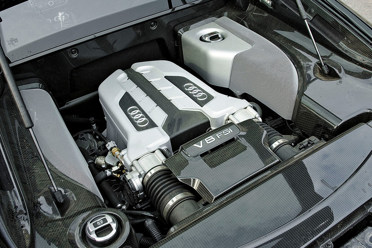 Этот мотор можно встретить и на других моделях Audi, а главное отличие его версии для Audi R8 — система смазки с «сухим картером», предохраняющая от масляного голодания при больших перегрузках