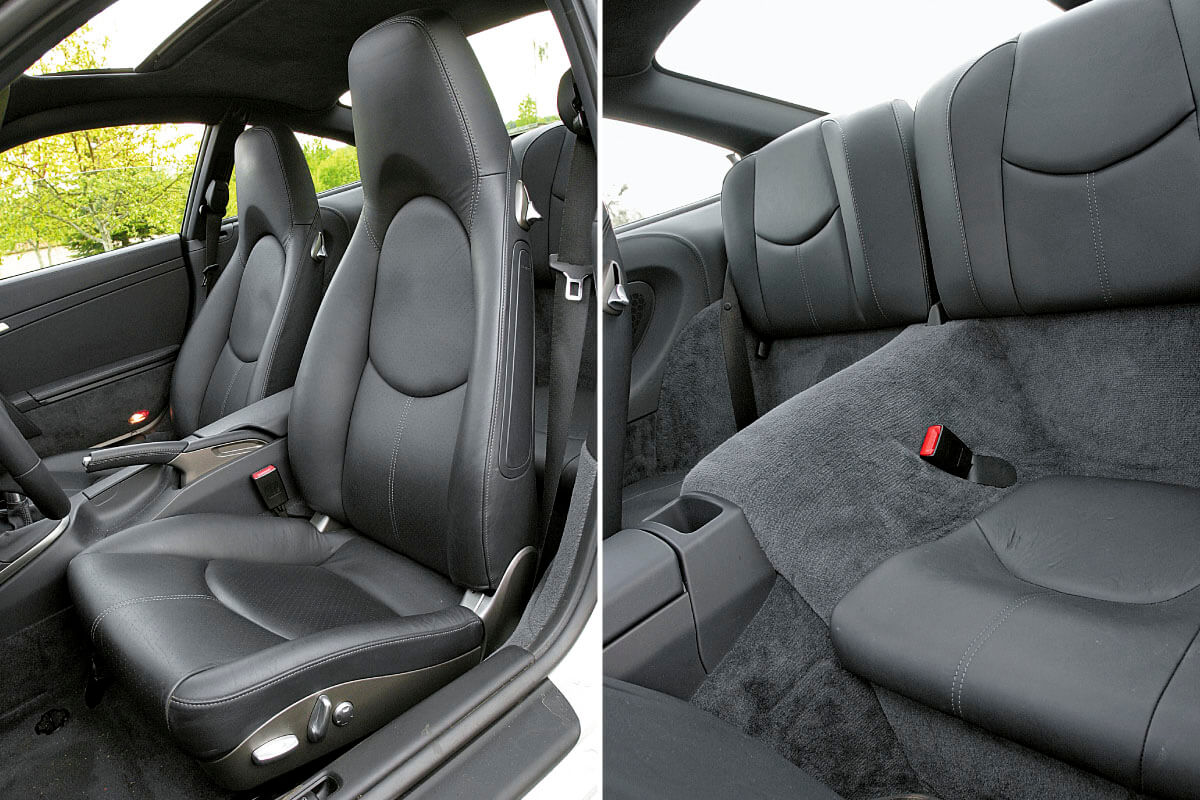 Внешне сиденья Porsche не производят впечатления спортивных, но никто не пожаловался на недостаток «связи с автомобилем» / На задних сиденьях Porsсhe можно вытерпеть недальнюю поездку