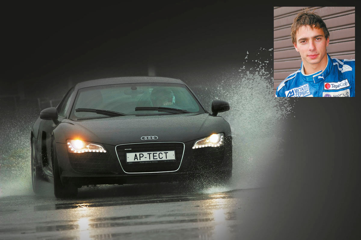 Кстати, когда мы впивались в руль Lambo на «динамке», навстречу пронесся Ferrari с включенными фарами: дорога подсохла, начались замеры. Значит, и Цыпленков сейчас приступит к «переставке». Отдаем ему Lamborghini, а сами перебираемся в Audi R8.