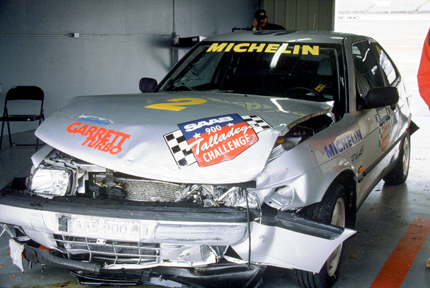 Пока мы ели-пили, по трассе Талладега продолжали носиться автомобили Saab 900 Turbo. И так — день за днем, круглые сутки нон-стоп.