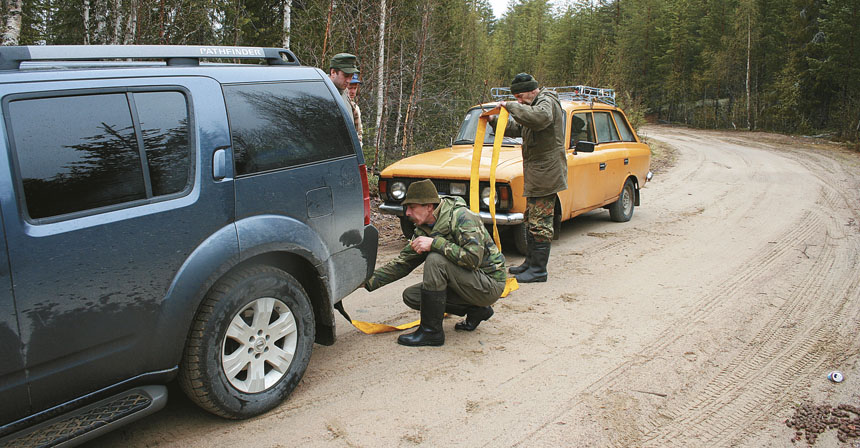 На обратном пути нам пришлось тащить на буксире сломавшийся автомобиль ребят из Петрозаводска. Pathfinder и здесь не подкачал
