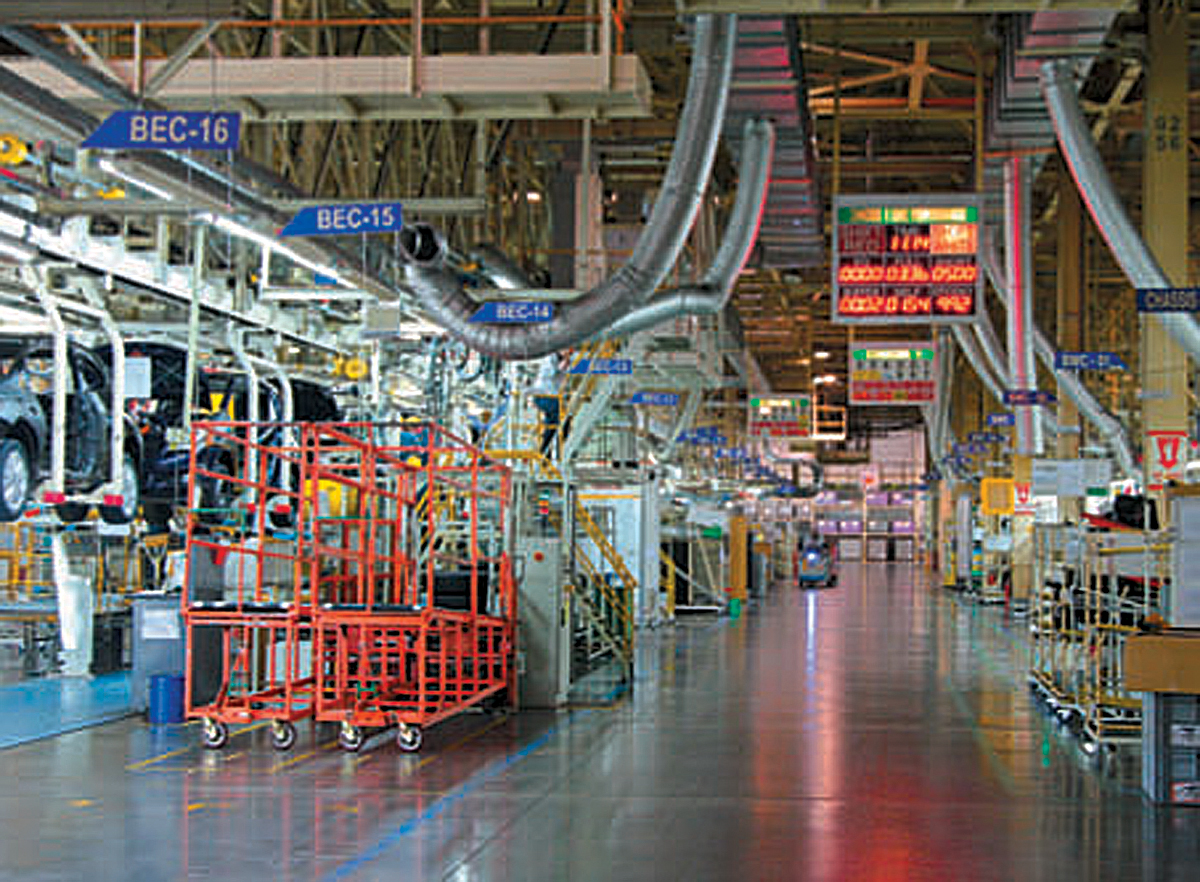 Срок переналадки станков на тойотовских заводах сократился с нескольких часов до нескольких минут. Были ликвидированы промежуточные склады. Введена система «точно вовремя» — детали поставляются на конвейер по мере надобности с помощью системы карточек канбан по образу и подобию системы в американских супермаркетах.