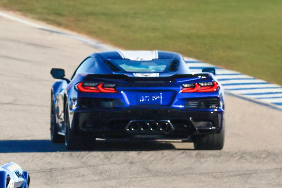 Автомобиль выехал на трассу в сопровождении спорткаров Corvette Grand Sport прежних поколений. Расширенный кузов позаимствован у модификаций E-Ray и Z06, а четыре патрубка выхлопа расположены по центру, как у последнего. В списке новых деталей — другой сплиттер спереди и более острый спойлер сзади. Кроме того, можно обратить внимание на особую центральную часть переднего бампера: судя по всему, она сделана из карбона.