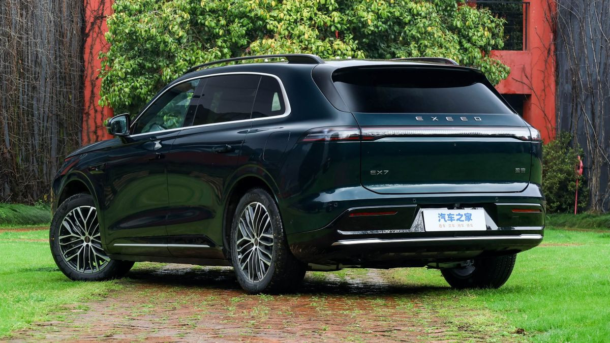 Внешность Exeed EX7 ничем не выдает новаторскую сущность модели. Кузов обладает плавными и обтекаемым формами, в передней части установлена двухъярусная светотехника, а на корме — монофонарь. В профиль заметны выдвижные дверные ручки. На выбор предложены шесть цветов кузова. Длина новинки — 4988 мм, ширина — 1975 мм, высота — 1710 мм. Колесная база — 3000 мм. В зависимости от исполнения кроссовер оснащается колесами диаметром от 19 до 21 дюйма.